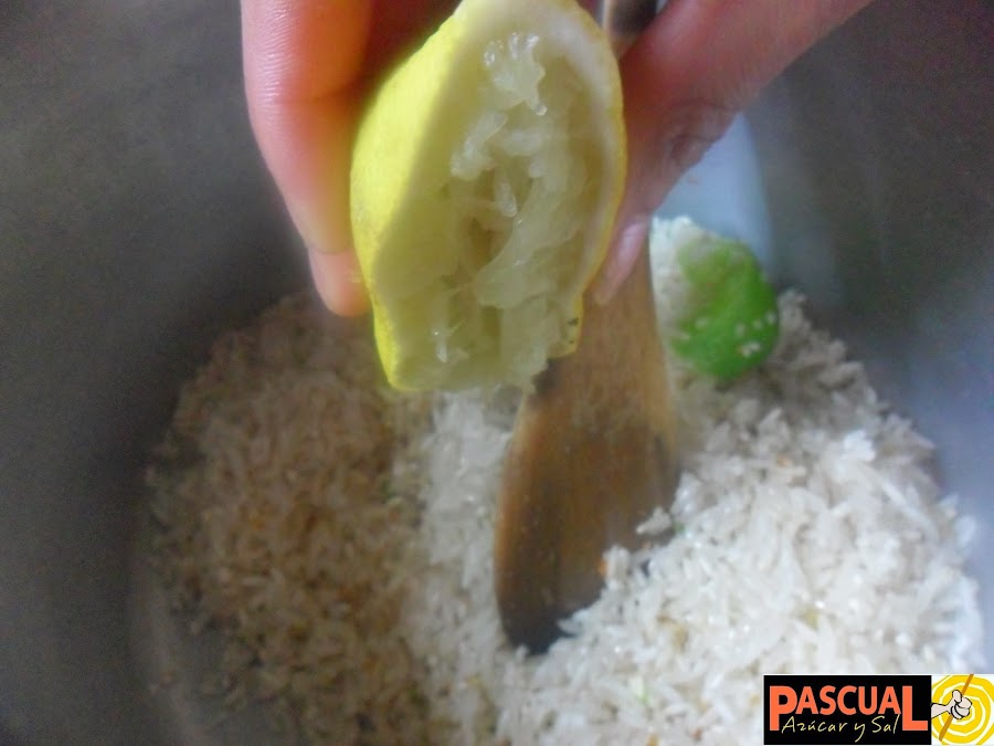 El limón, se agrega para que el arroz quede más suelto y más blanco.