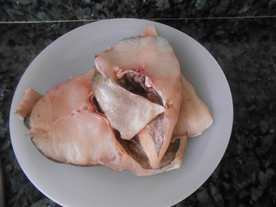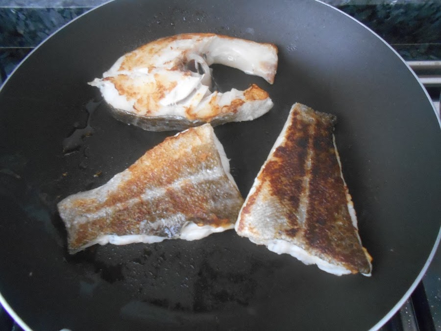 Pescado (se suele usar el mismo que se hierve para el caldo o bien otro a parte, Yo lo hice con lomos de bacalao)