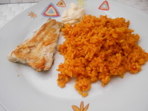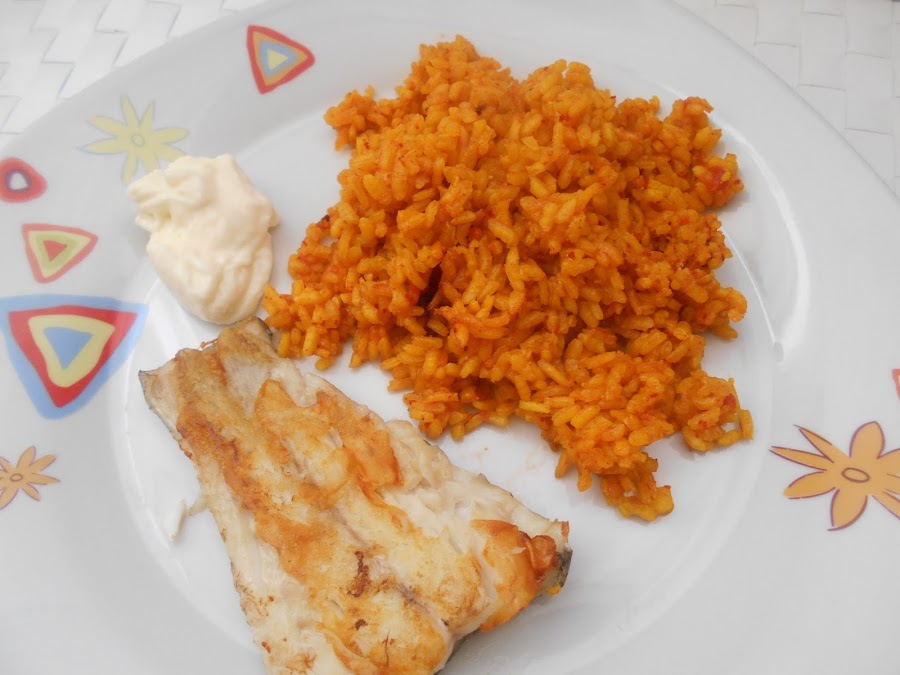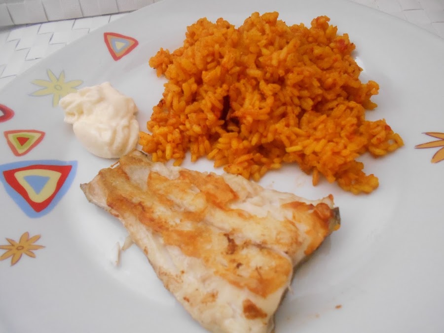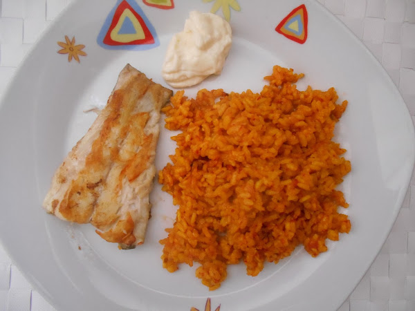 El pescado que hemos reservado las rodajas o lomos de pescado. Se sirve a parte del arroz, bien el arroz como primer plato y el pescado de segundo o como en mi casa todo en el mismo plato por pura comodidad y por no andar enredando.