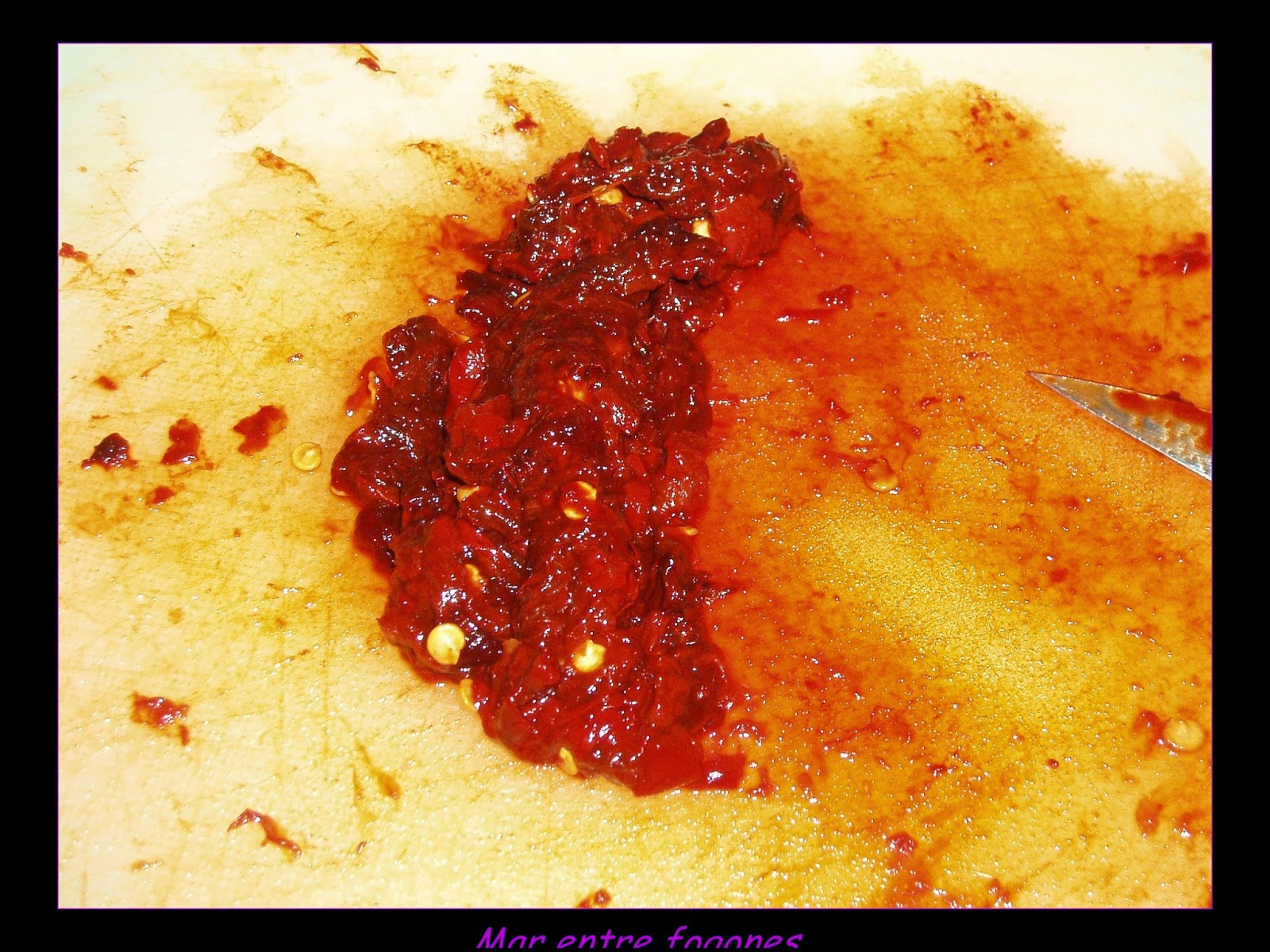 Con la punta del cuchillo rascamos suavemente para coger la carne de la ñora.