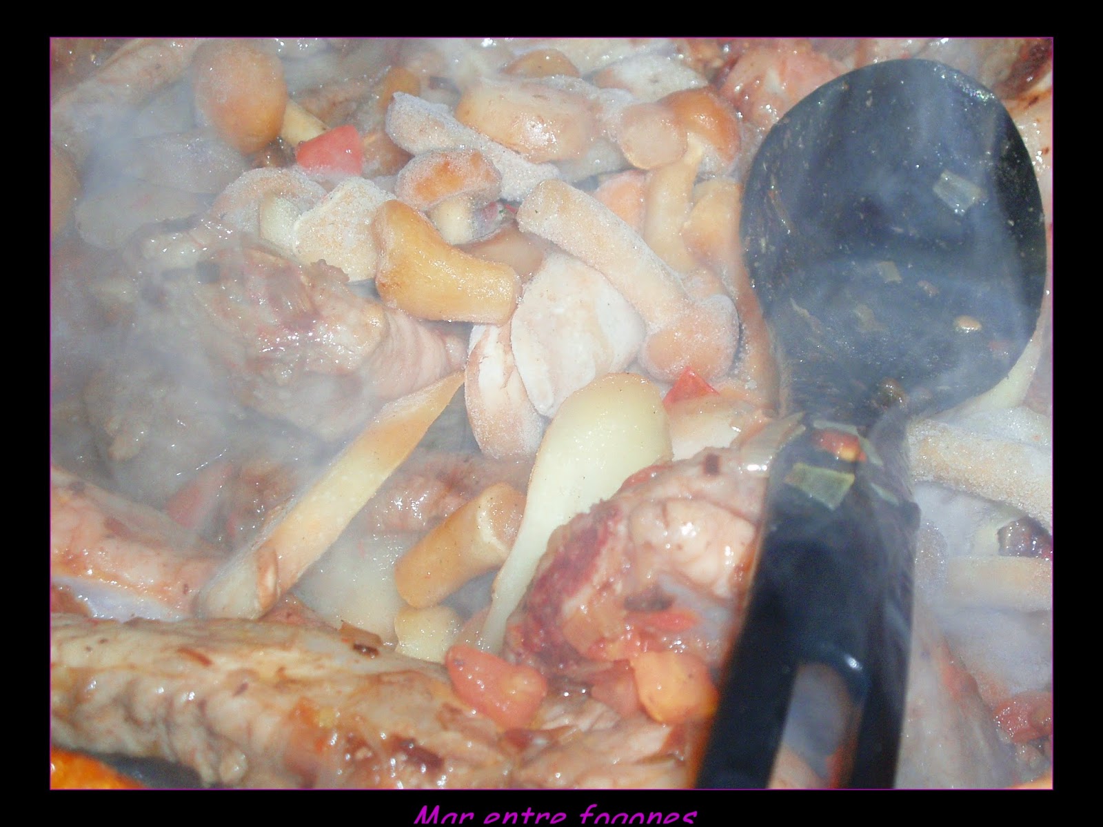 Me decidí por la última opción y claro está, la receta la iba a hacer a mi manera, pero cocinada en una cazuela diferente. Iba a usar la "Pereruela" que seguro le iba a dar un sabor diferente a la cazuela normal. Esta cacerola no se ni los años que tiene ya que cuando me casé (hace ya casi 15 años), me la dió mi abuela, que ya la usaba ella desde hace años.