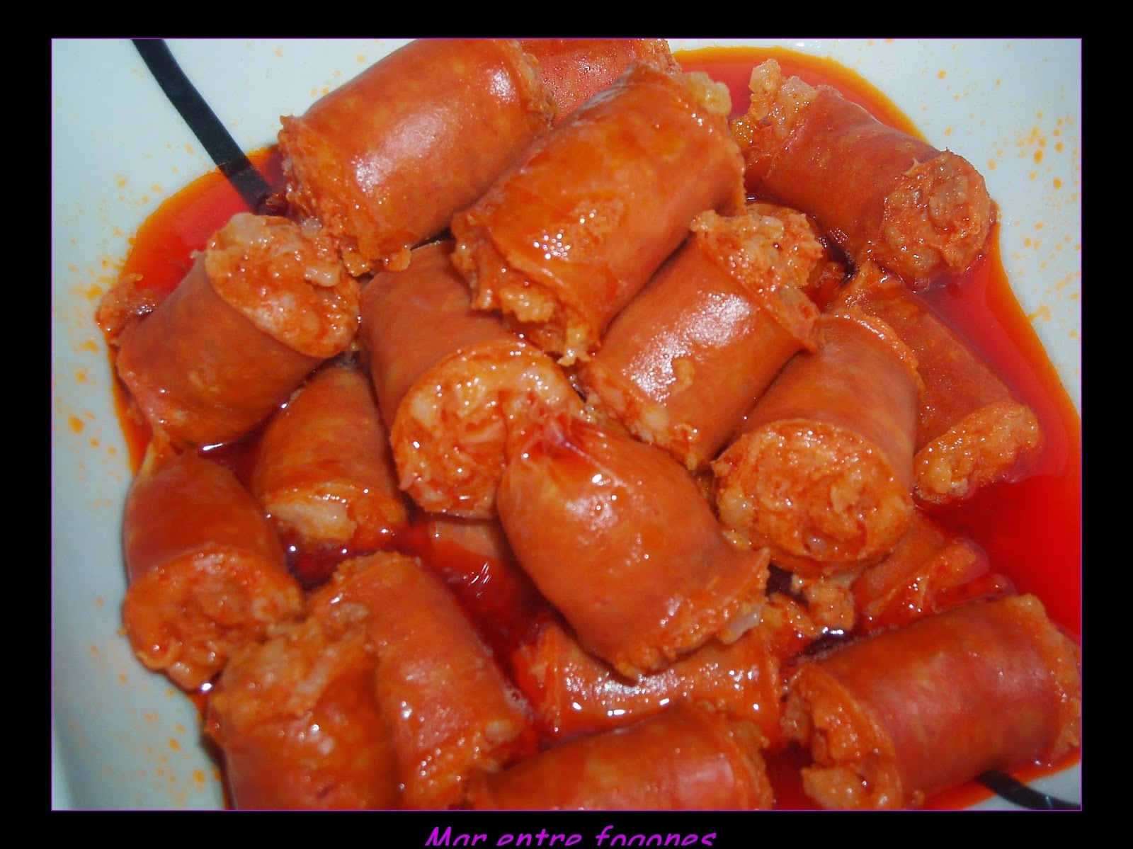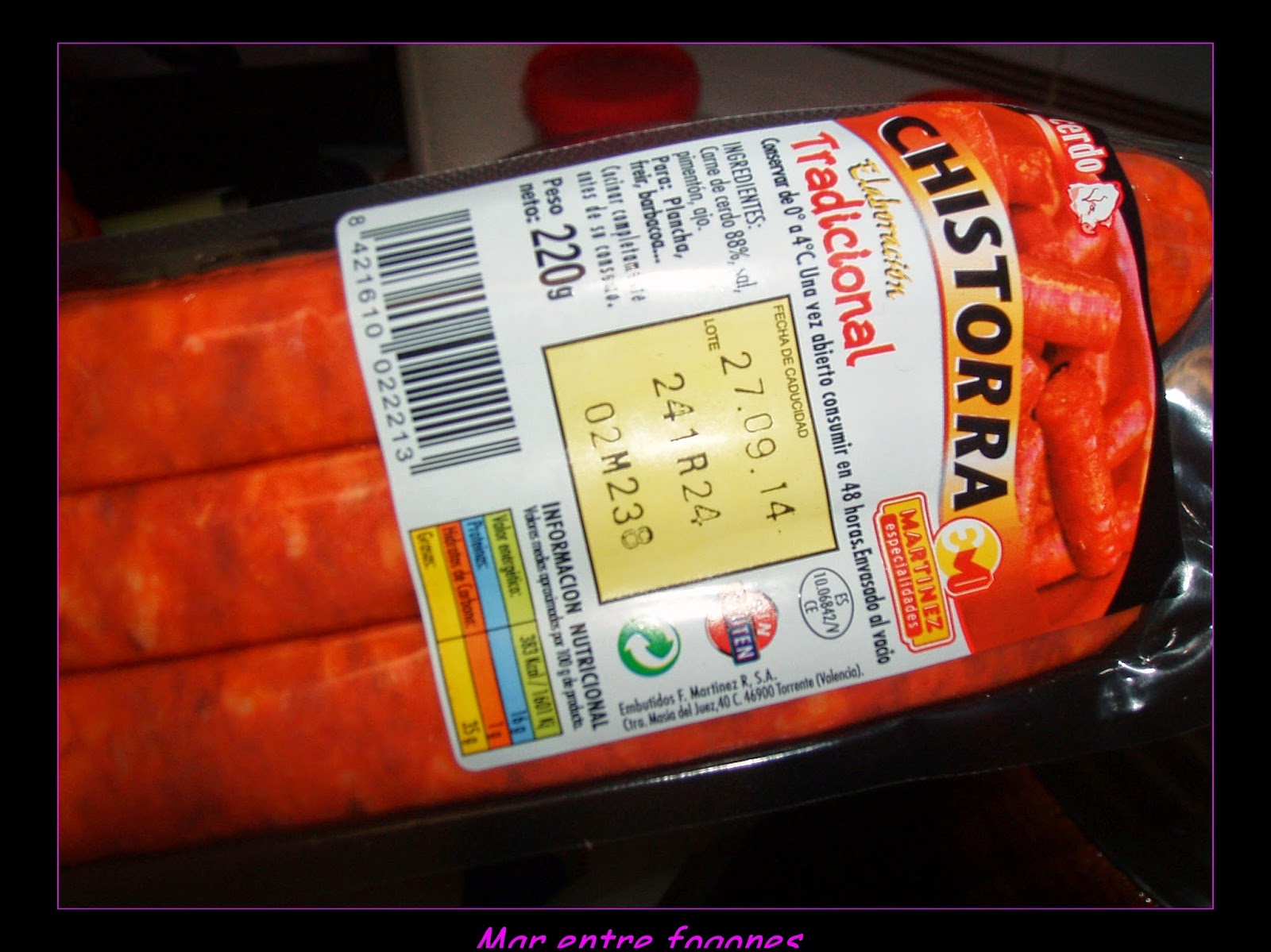 En una fuente pequeñita ponemos la chistorra en trocitos.