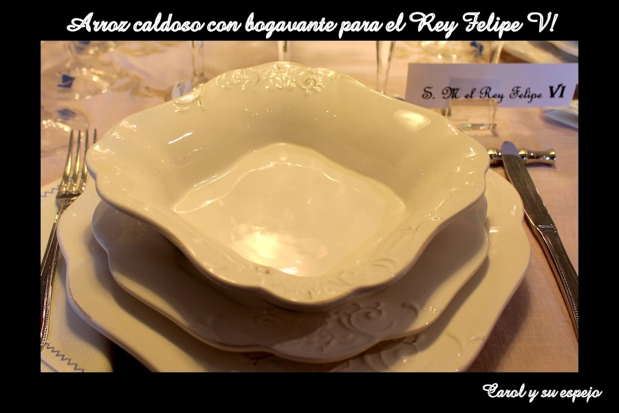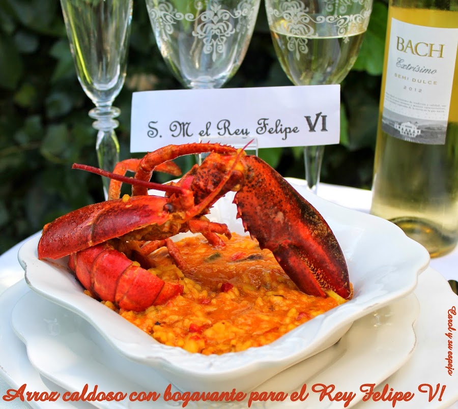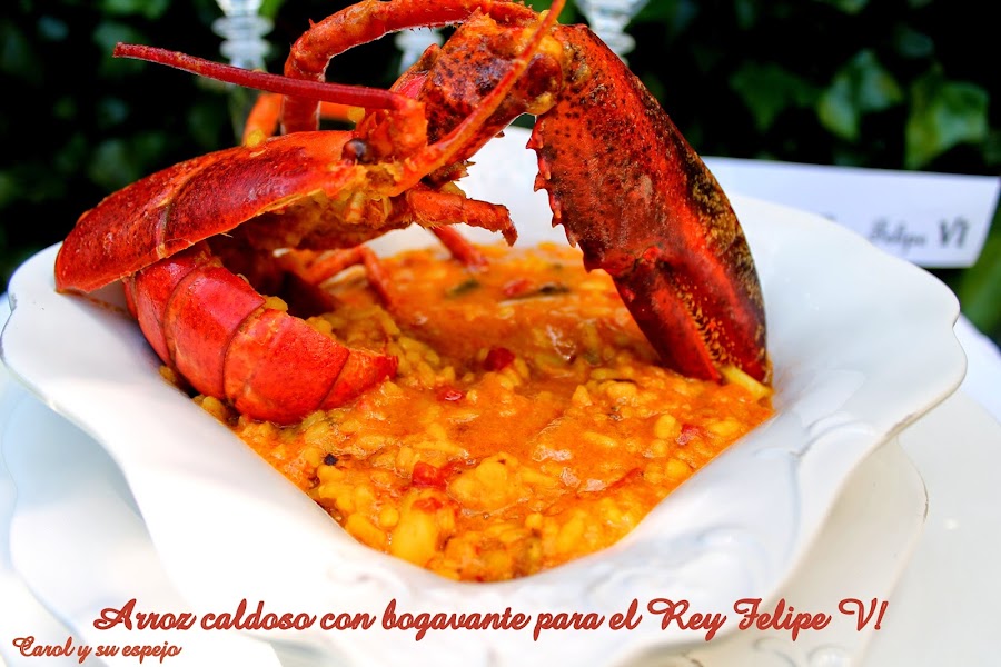 Entonces, el me dijo que su comida favorita era el arroz con bogavante y que iban precisamente a comerlo en un Restaurante que hay en San Lorenzo de el Escorial que se llama "El Horizontal" ( esto si que ocurrió de verdad, lo se de primera mano, ese día, el entonces príncipe Felipe, comió en ese restaurante un arroz con bogavante) así que le dije que yo hacía el mejor arroz con bogavante del mundo y que le invitaba a cenar el 19 de junio con mi familia. Pensaba que se iba a reír de mí, pero no, cual fue mi sorpresa que aceptó. Me dijo: " ese arroz hay que probarlo!!!! allí estaré a las 20.30 h, te parece???