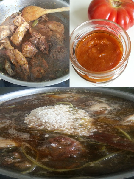 Nota: para reducir raciones, la proporción para esta receta es: por cada parte de arroz, cuatro partes de agua.