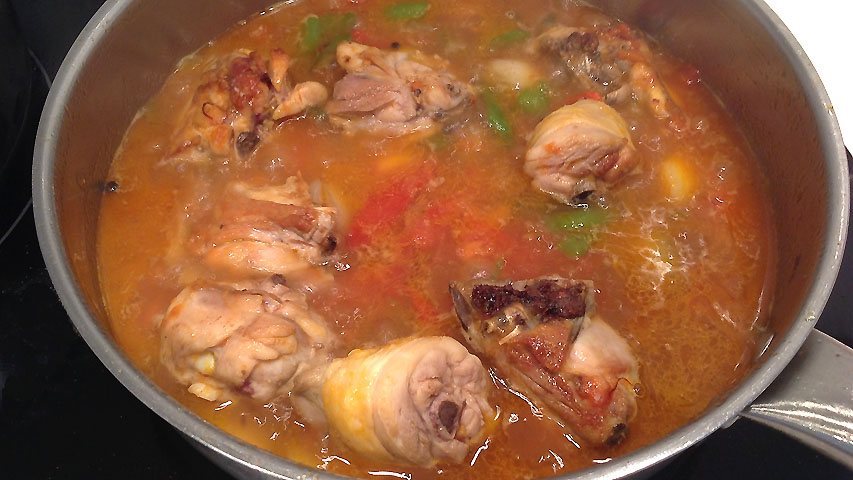 Para cocer el pollo antes de añadir el arroz, cubro con caldo VER RECETA.