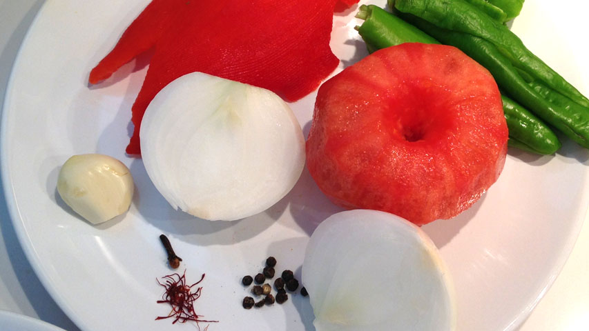 Incorpora el clavo, los granos de pimienta y el azafrán.