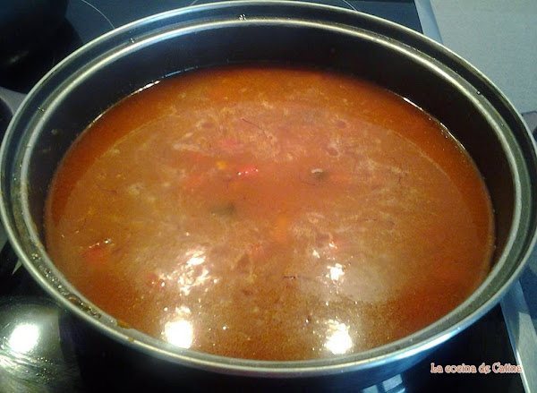 un litro de caldo de pescado (yo he utilizado el caldo de cocer el pulpo)