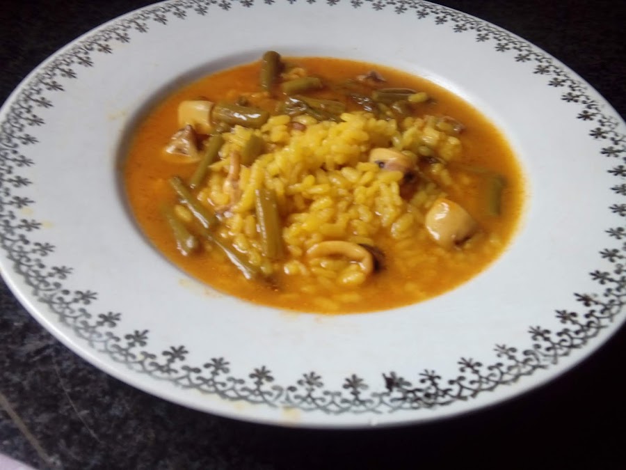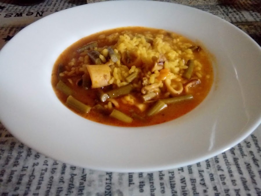 Levantamos el hervor de nuevo y agregamos el arroz. Bajamos el fuego y cocemos 15-17 minutos removiendo de vez en cuando. Comprobamos que está a nuestro gusto y comemos recién hecho.