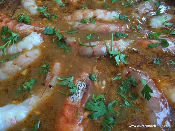 Para esta receta hemos empleado gambón que nos ha salido a mejor precio que la gamba, somos muchos para comer.