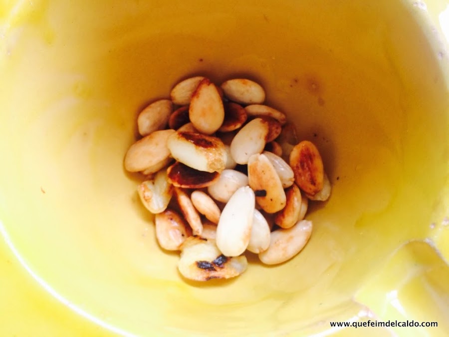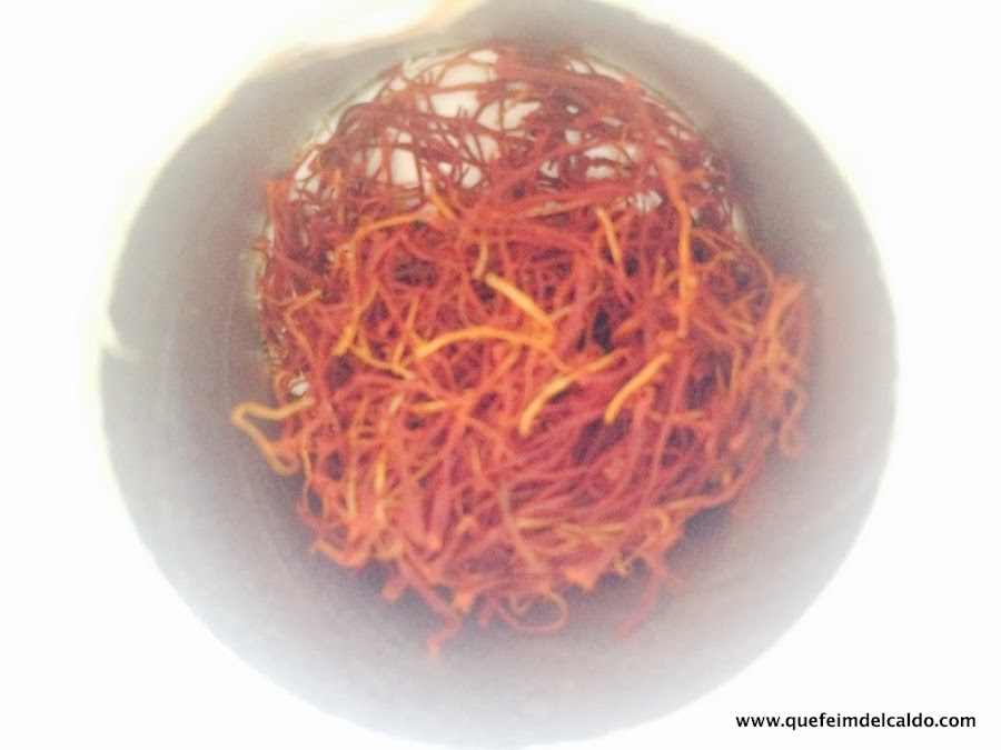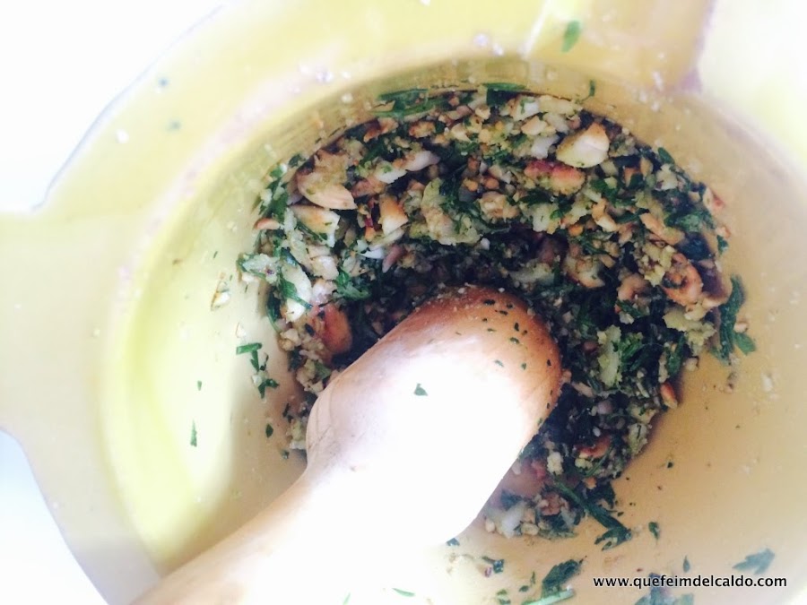Al mortero le añadimos el perejil y también unas hebras de azafrán.