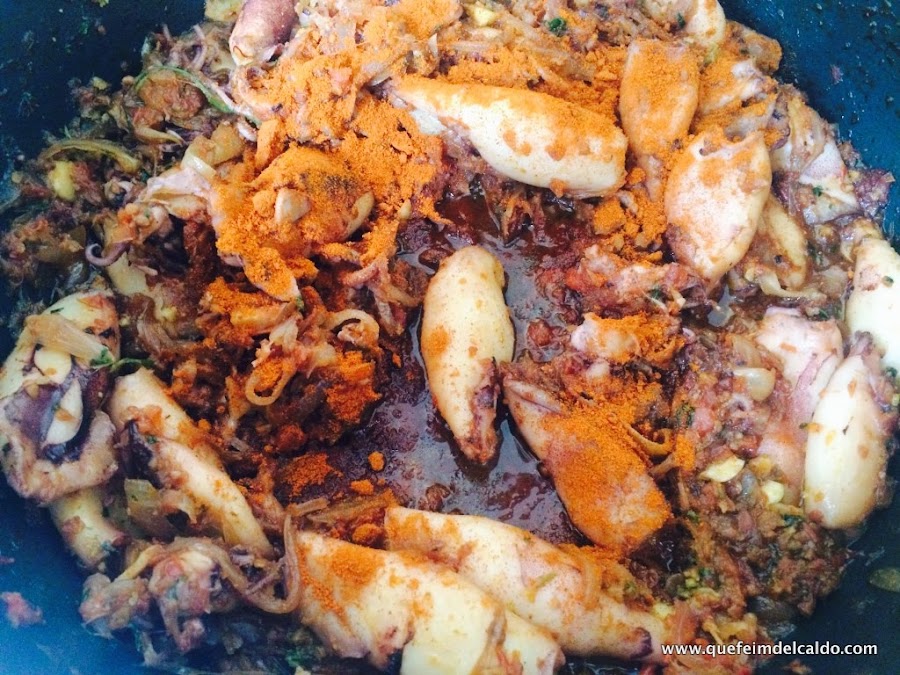 Removemos para juntar todos los ingredientes, el pimentón no se puede quemar ni quedar crudo.