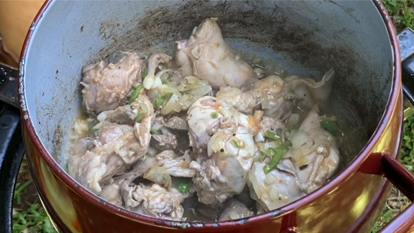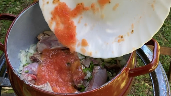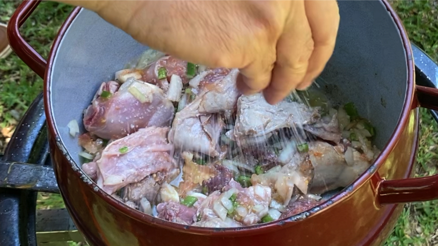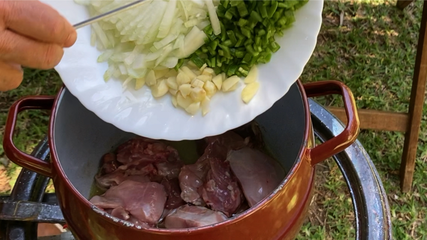 Mezcla todo y deja que sofría la verdura y se dore el conejo un poco.