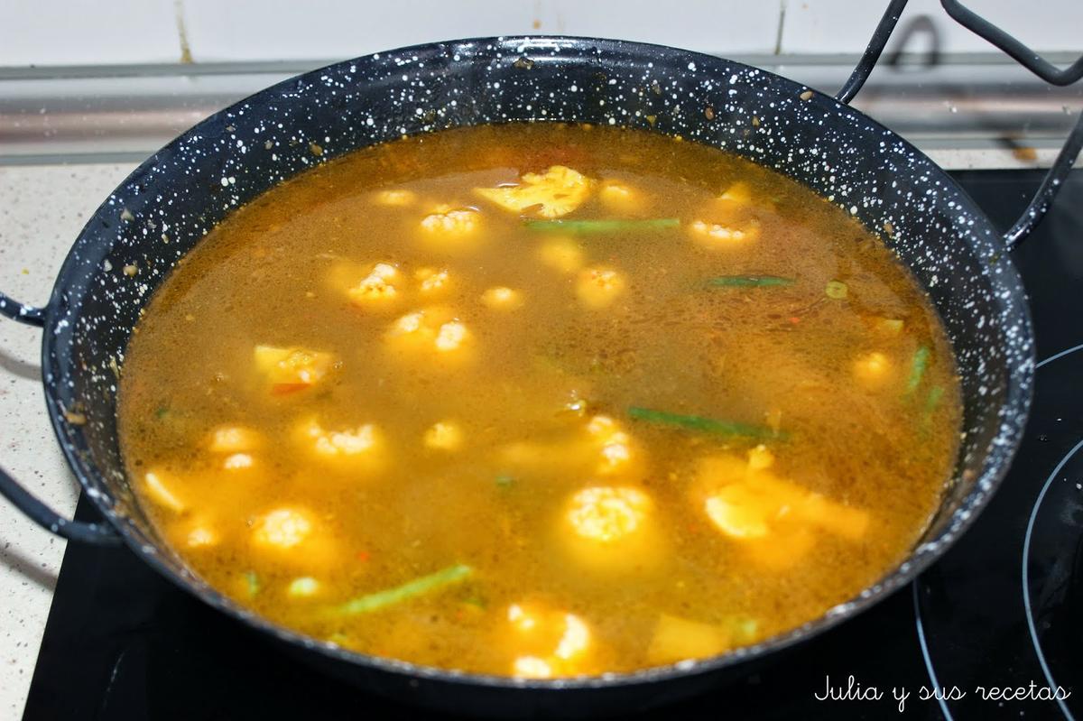 Si es necesario le añadimos mas caldo caliente durante la cocción, hasta ponerlo a nuestro gusto. En casa gusta caldosito.