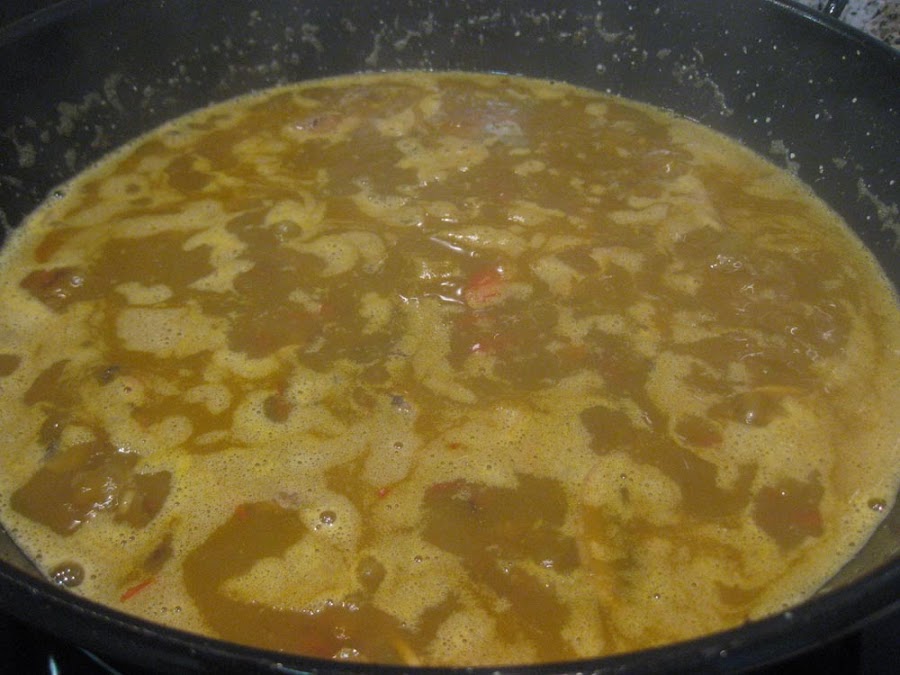 Por último, cuando esté casi para retirar del fuego, le añadimos las gambitas, de esta forma quedaran más jugositas.