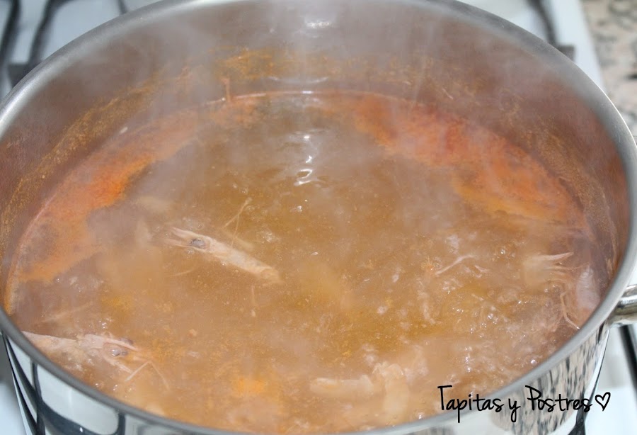 Esta es mi versión particular con pollo y gambas, quizá no sea como las recetas de las ventas, pero como cada cocinero le da su punto esta es mi aportación.INGREDIENTES: