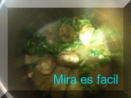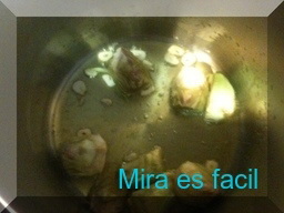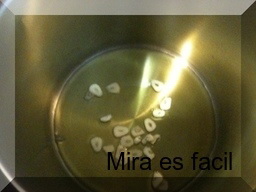 Ponemos en la cazuela el aceite y el ajo. Sofreímos.