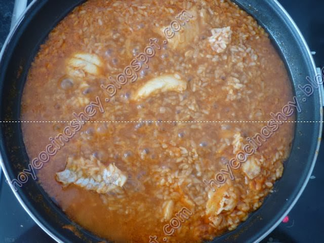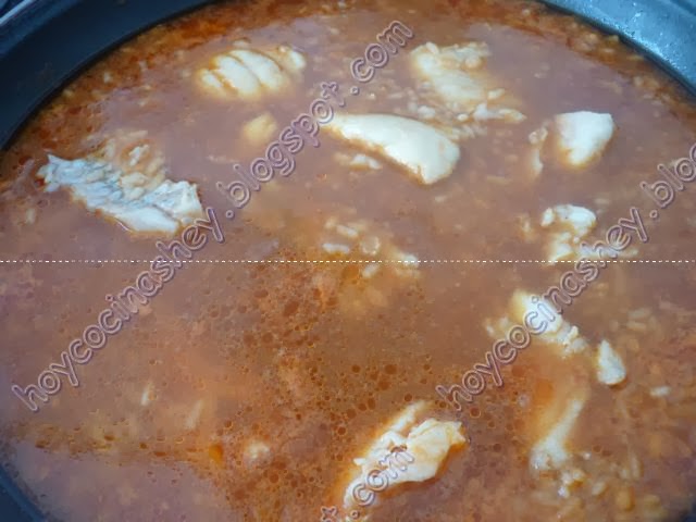 Dejamos hervir durante 10 minutos y agregamos los lomos de pescado en trozos así sera mas fácil servir: