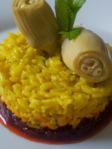 Esta receta la vi en el blog El bocado de la huerta de nuestra querida amiga Mijú, ella fue la que me dio la idea de preparar esta versión de arroz con alcachofas, que no tiene mucho que ver con la suya, pues ella utilizó semillas de mostaza y yo cúrcuma, pero en ambos casos, es el resultado de una receta con pocos ingredientes, económica y muy saludable.
