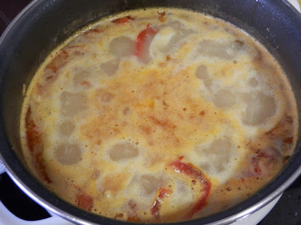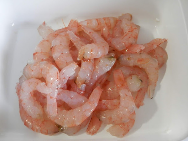 Cuando le falten dos minutos para terminar, añade las gambas peladas y deja que se cuezan con el calor que le queda.