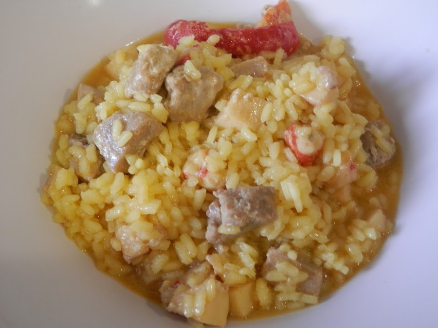 Hoy en casa nos apetece arroz, así que sin dudarlo mucho me he lanzado a la cocina y me ha quedado un arroz de lo más rico (modestia aparte) y aquí os lo traigo, reciente, calentito y dispuesto en la mesa.