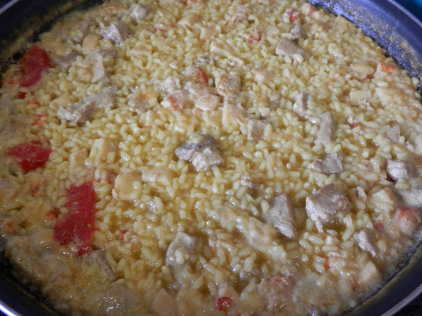 Es el momento de añadir el arroz, cocemos durante 18 - 20 minutos y servimos caliente.