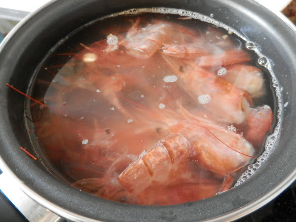 En primer lugar vamos a pelar los gambones y reservamos las cáscaras.