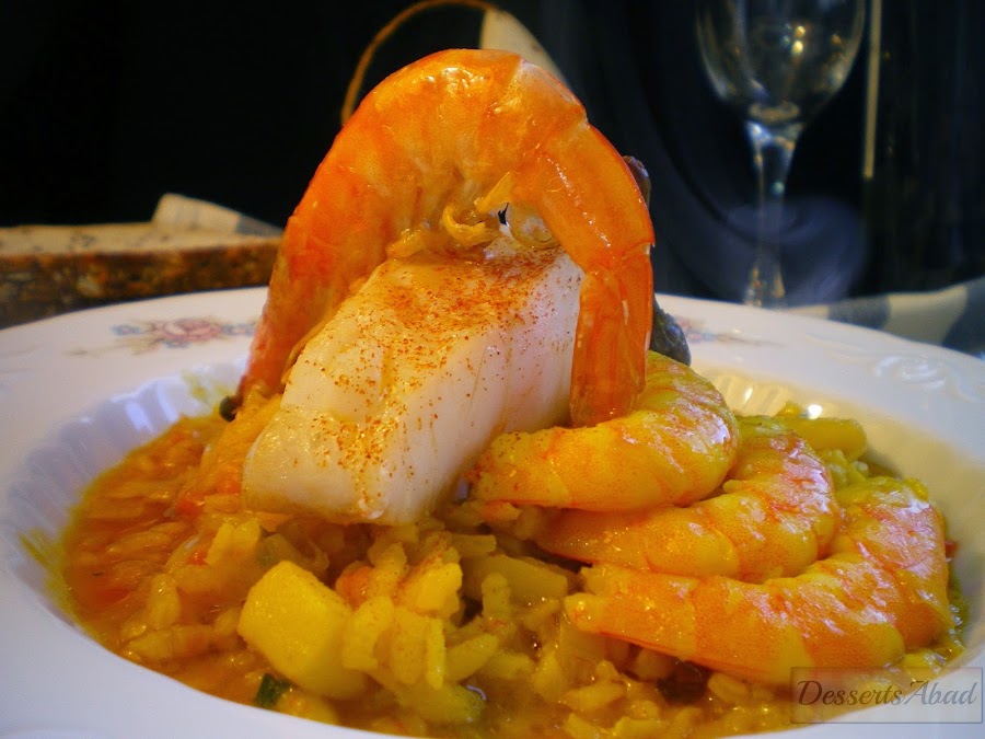 El arroz con bacalao es un plato que a estas alturas todos conocereís por tratarse de una receta elaborada sobre todo por tradición en época de Cuaresma y es considerado un plato de "vigilia", es decir, de los "permitidos" durante los viernes de esta celebración al no llevar nada de carne. Otra cosa es que no podamos engrandecer este sencillo plato y servirlo con unos deliciosos langostinos y elaborarlo con un buen fumet como base, que hará de él, un plato de lujo sin tener que renunciar a la penitencia y de esta manera alejarnos del "pecado de la carne".