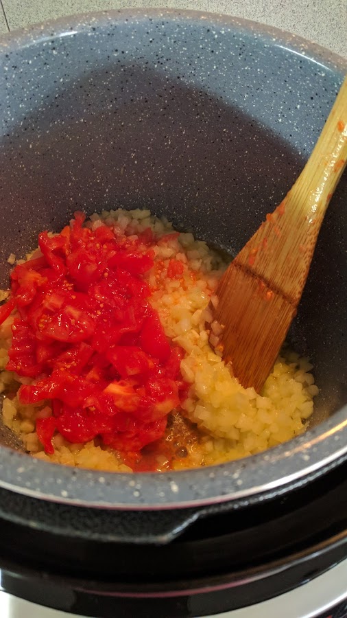4 cucharadas soperas de AOVE1.- sofreímos la cebolla, ajo y tomate, menú freír, temperatura 140 grados y unos 8-10 minutos. Añadimos la ñora y removemos. Puedes programar unos 16 minutos y vas descontado los tiempos
