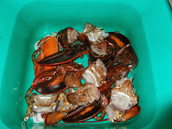 Mientras se va cocinando la sepia y el pimiento rojo, se abren las cabezas de bogavante por la mitad y junto con la parte alta de la pata, no las pinzas, se echan a la perola con un puñado de sal.