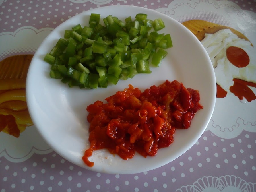 Se parte bien finito el pimiento (el verde en crudo y el rojo asado).