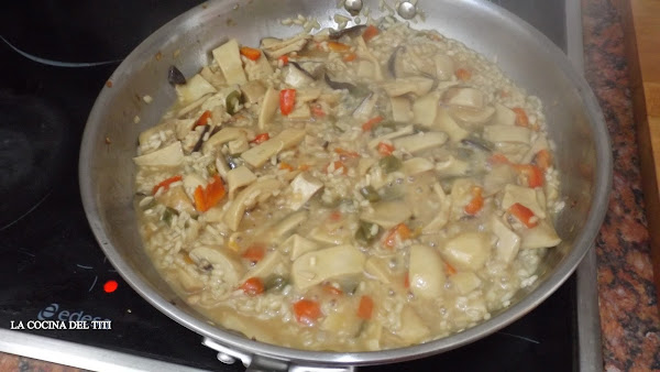Pondremos a temperatura moderada y dejaremos que brote el arroz y espese
