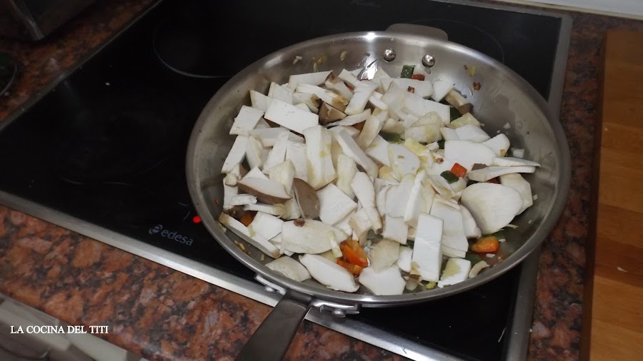3º Añadimos los boletus cortado en rectangulos grandecitos