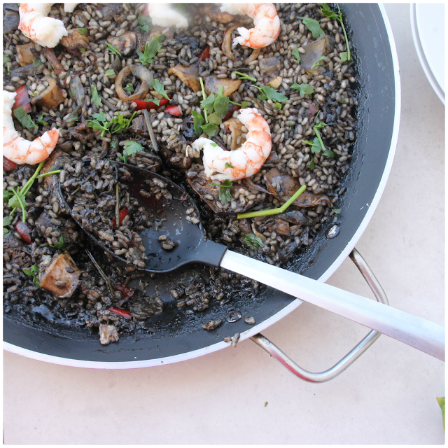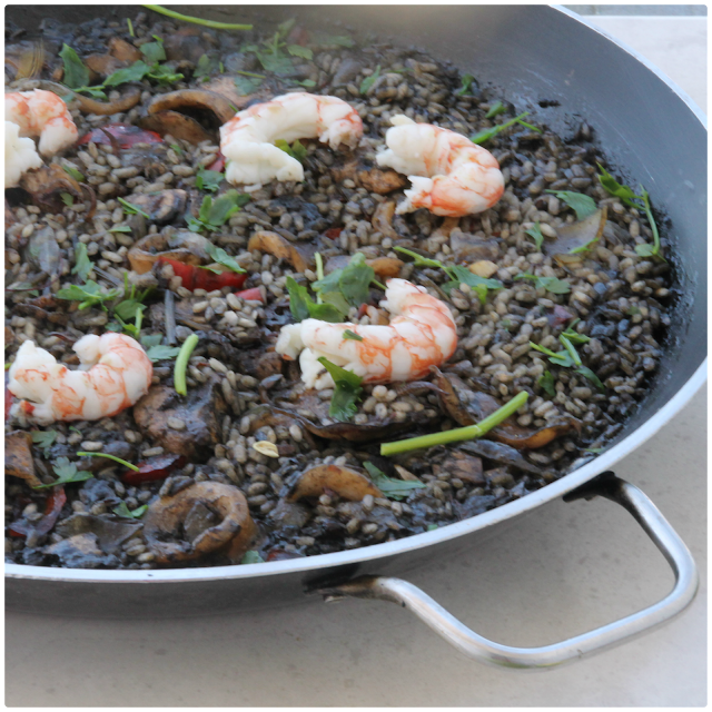 -Cuando quede poco echamos por encima perejil picado y unas gambas peladas.