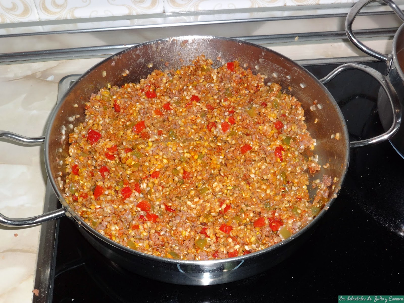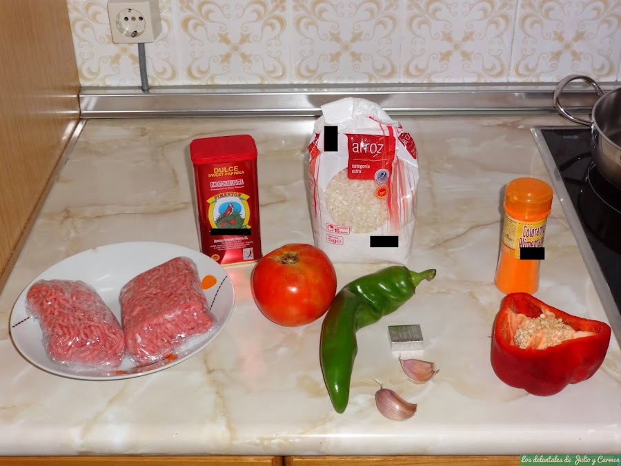 La paella. Ese plato típico valenciano que tantos y tantos domingos hemos probado en casa de nuestras madres rodeados de toda la familia. ¡Que recuerdos! ¡Y que sabor! Yo siempre he dicho que no hay paella mejor que la que nos preparan las madres. Por esto, a día de hoy, aún no me he atrevido a lanzarme en la preparación de este plato (eso si, seguro que algún día lo preparamos). Sin embargo, y ya que en casa nos gusta tanto el arroz, nos decidimos por preparar una paella "alternativa". Algo diferente que no pudiera compararse con la de las madres para que fuera tratado como un plato diferente. Así que, tomando como base la receta de casa, sustituimos las típicas verduras, calamares, pollo, etc. por carne picada (puede ser mixta o de ternera).