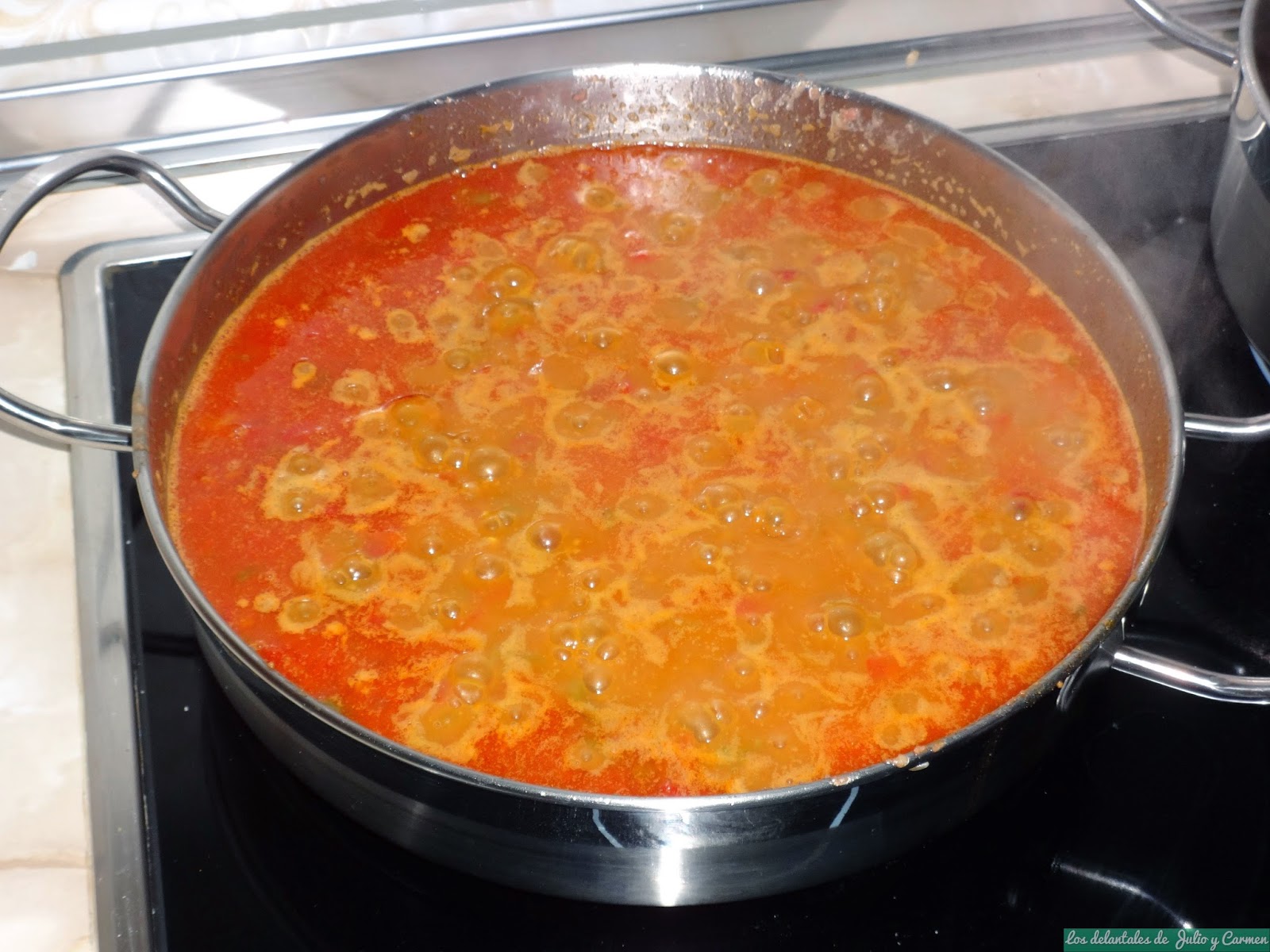 Removeremos de vez en cuando para evitar que se nos pegue a la paellera.