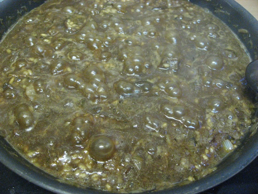 3º " En esa misma olla echaremos una pastilla de caldo de verduras y dejaremos que reduzca durante unos 10 minutos.