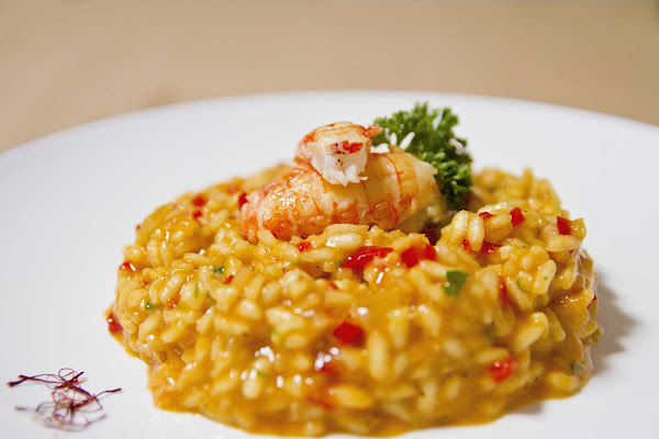 Una vez hecho el sofrito añadir las colas de cigala peladas y rehogarlas. Echar el arroz y sofreírlo con todo lo demás. Añadir un poco de colorante de paella y dar unas vueltas para que se mezcle todo bien. Añadir el caldo de la cocción de las cigalas y programar Menú guiso, 12-14 min, temperatura 1