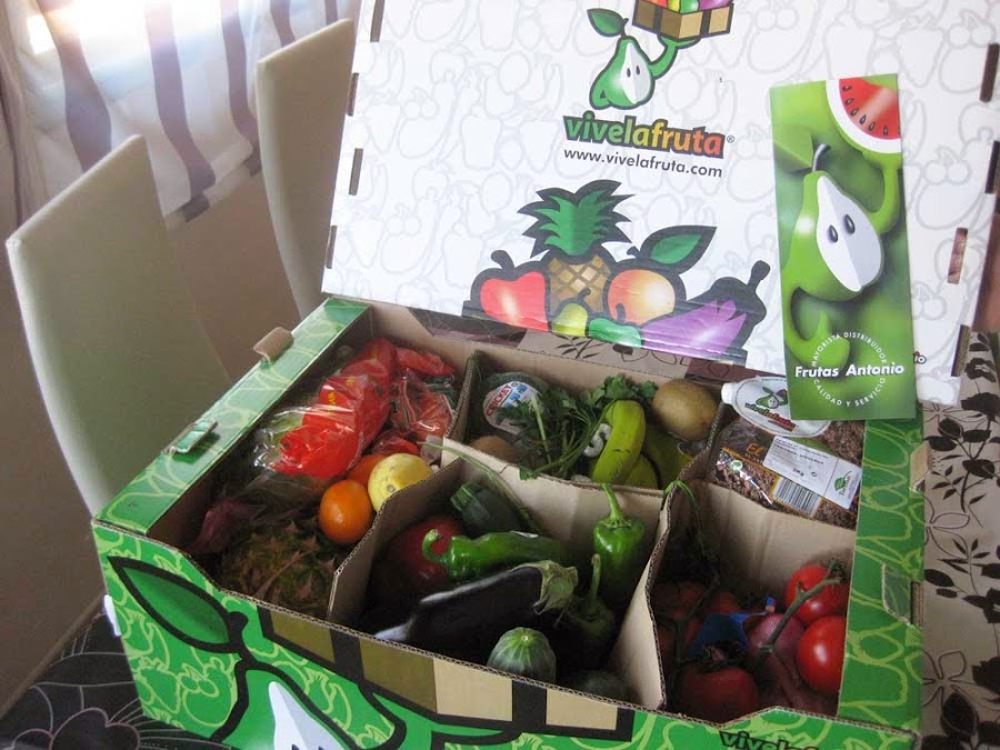 Para terminar , quiero hablaros de una empresa que distribuye sus productos a través de internet . Vive la fruta . Puedes elegir entre una gran variedad de combinaciones y te lo dejan en casa , todo preparado con mucho mimo y una calidad muy buena , os puedo decir que recibí todo en perfectas condiciones . Me llegó un surtido variado de casi 20 kg que incluía un poquito de todo , patatas , cebollas , ajos , tomates , pimientos , brocoli , zanahorias ..... y frutas variadas , hasta un ramito de perejil . Tengo varias recetas pendientes de enseñaros que me han salido con este delicioso surtido . Os dejo alguna foto para que podáis comprobarlo por vosotros mismos .