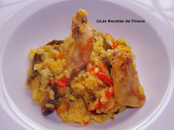 PREPARACIÓN: Es importante tener siempre, en el congelador, un caldo de pescado, carne o verduras. Nos ayudará mucho al hacer platos como este. He aprovechado un caldo de verduras que he puesto a calentar y mientras, he puesto el wok al fuego. Lavamos y secamos bien los trozos de conejo. Salpimentamos y cuando el wok coja calor echamos un chorretón de aceite y freímos el conejo. Mientras se dora bien, lavamos y cortamos en tiras finas los pimientos y los puerros. Ya tendremos el conejo bien dorado, añadimos los pimientos y revolvemos. Al minuto echamos los puerros y seguimos revolviendo. Es muy importante revolver cuando cocinamos en wok. Llegado este punto podemos retirar el pimiento y el puerro para que no se hagan más pero, en esta ocasión, lo he dejado hacerse y me ha gustado el resultado. Así que, he añadido el arroz, le he dado unas vueltas con los ingredientes que ya estaban en el wok y he puesto el triple de caldo caliente que de arroz. Al romper a hervir lo dejamos 5 minutos, salamos y bajamos el fuego para que se termine de hacer, sin dejar de hervir pero más despacio. Lo normal es que en 20 minutos, desde que hemos bajado el fuego esté en su punto. Pero depende del tipo de arroz. Lo mejor es probar. Si vemos que sigue duro, añadimos poco a poco, caldo caliente.Para mí, este es un plato único si lo acompaño de una ensalada. Y un plato rápido porque cuando se trabaja fuera de casa parece que sólo se puede comer arroz el domingo ;)