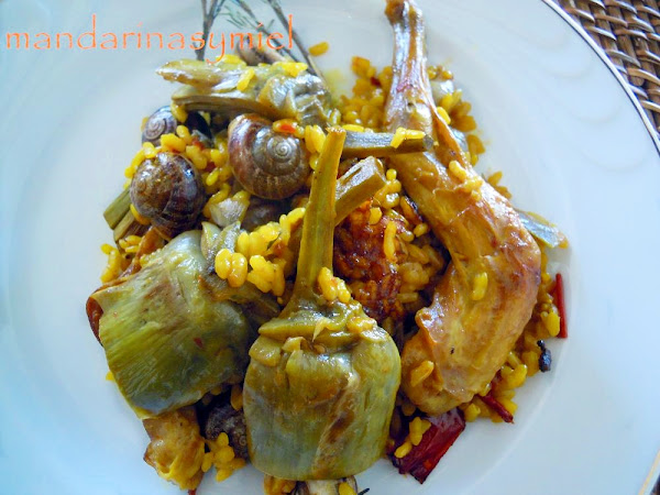 En la Comunidad Valenciana se pueden encontrar muchas recetas tradicionales con caracoles y carne, pescado, en arroces, o solos en salsa y guisados.Si quieres saber como se limpian los caracoles pincha aquí, y si quieres ver otra receta riquísima con caracoles, pincha en el enlace de Conejo con robellones y caracoles.....te encantará!!!