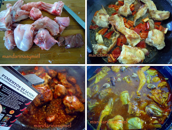 Se prepara de diferentes maneras según la zona, yo os pongo el que siempre ha hecho mi madre en casa. Se puede hacer en un paellón o en cazuela, en este caso lo he preparado en cazuela.