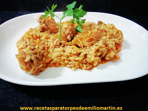 Cuando haya bajado la válvula, abrimos la olla y pasamos los trozos de conejo y el caldo, a una cazuela baja y ancha, cuando comience a hervir el caldo, añadimos el arroz, cocinamos 20 min, los primeros 5 a fuego fuerte y después bajamos a fuego medio, (si es necesario podemos añadir mas caldo) pasados los 20 minutos, probamos el arroz y si esta a nuestro gusto, retiramos, dejamos reposar. Servimos