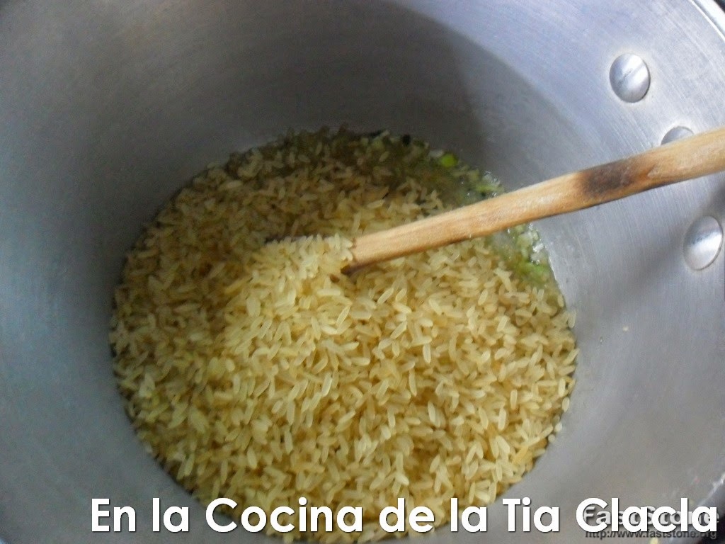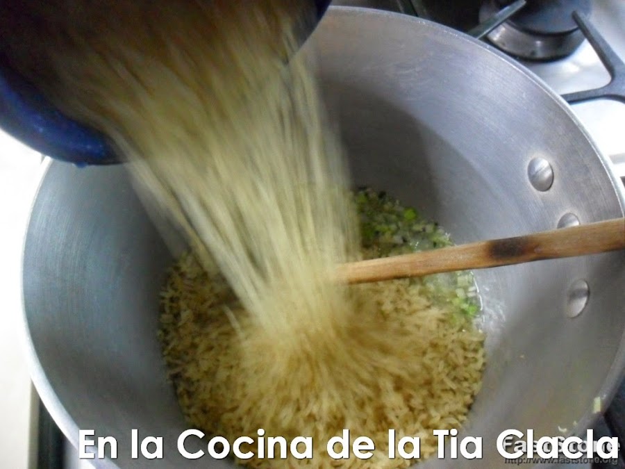 · Ahora ponga dentro de la olla la taza de arroz.