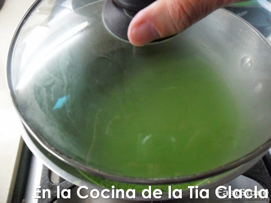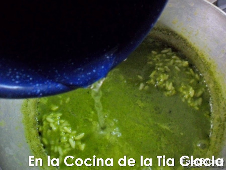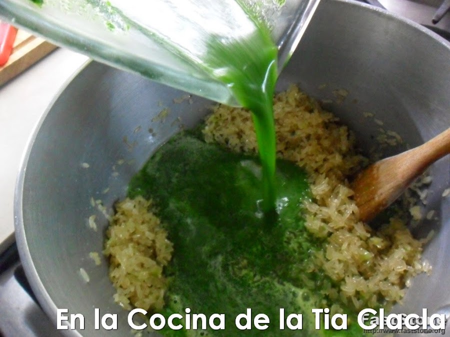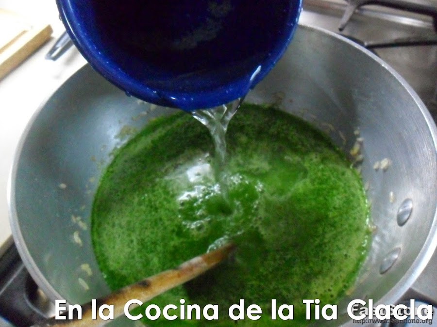 · Ahora agregue el licuado de las espinacas, y la taza de agua adicional.