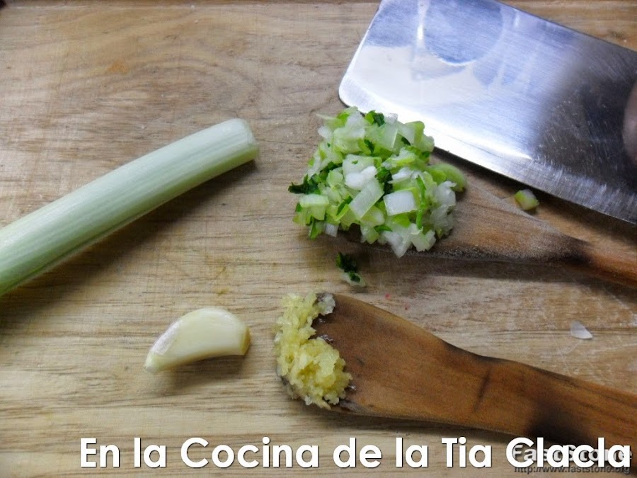 · Pique finamente la cebolla o cebollín y el ajo.