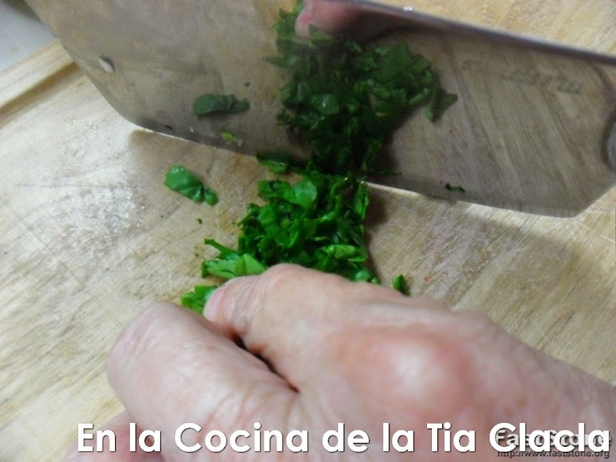 · Tome unas 3 hojas de espinaca y píquelas finamente.