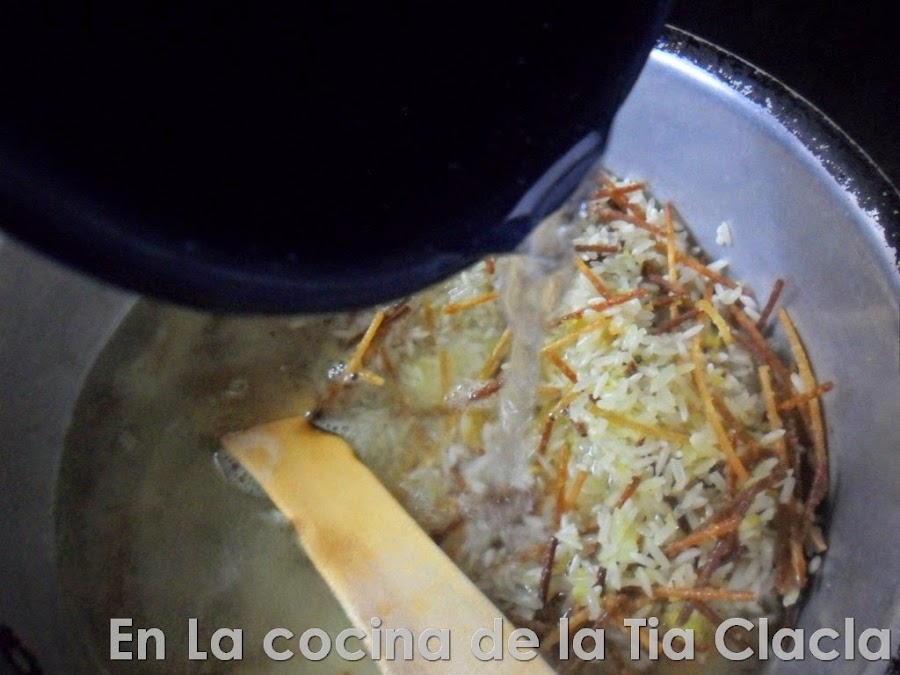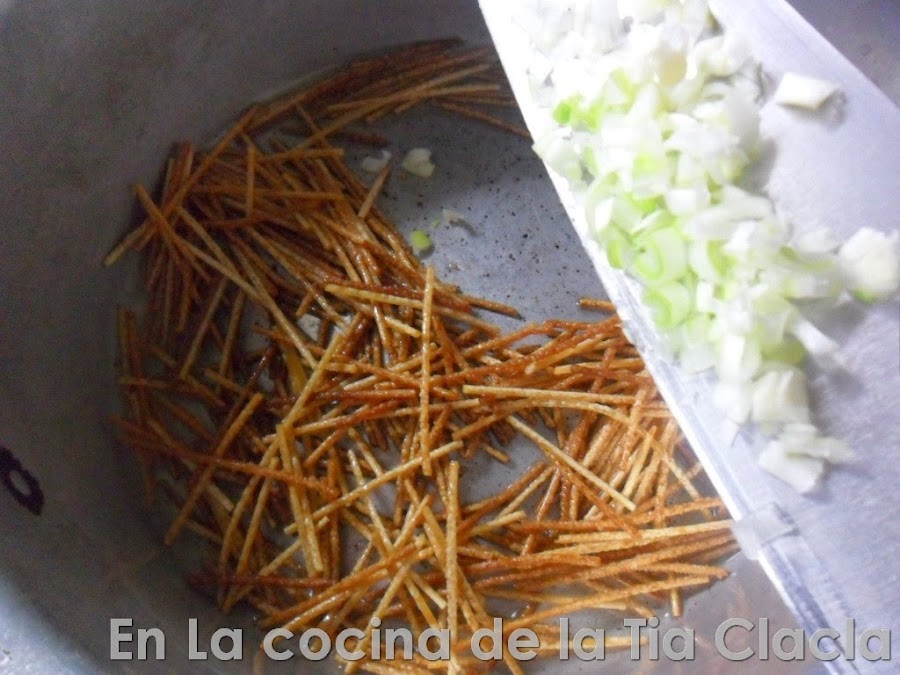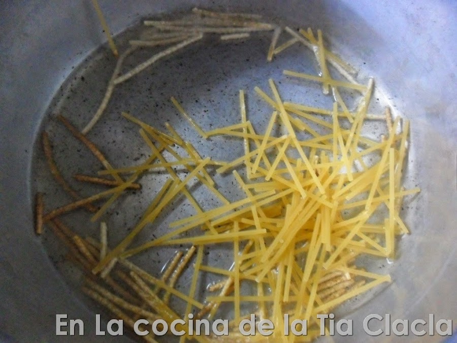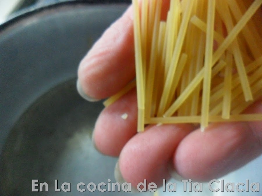 Parta los fideos con la mano en pedazos de mas o menos 3 centimetros.