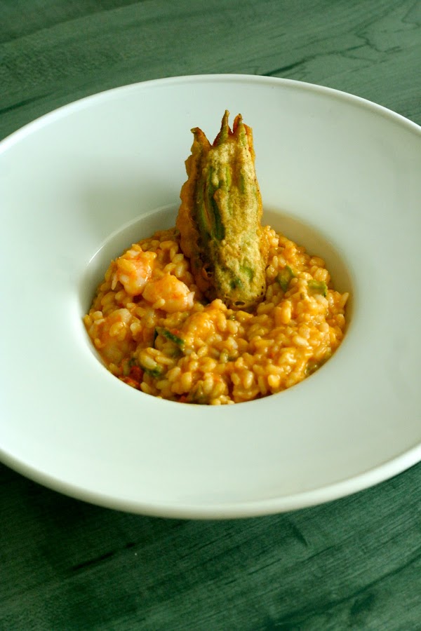 ARROZ CON FLORES DE CALABAZA Y GAMBAS