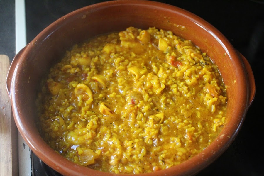 Dejamos cocer tapado, a fuego bajo, hasta que el arroz comience a estar tierno.