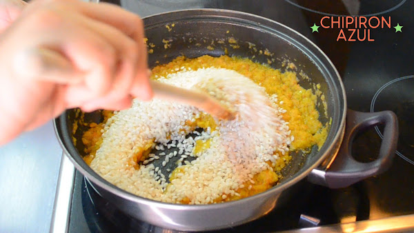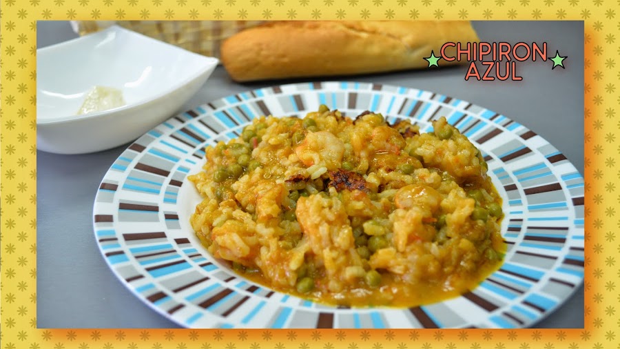 Es un arroz para esas personas que no le gusta que haya muchos tropezones por eso hemos triturado tanto las verduras. Y como únicos tropezones unas gambas y unos guisantes que les gustan a tod@s, o casi todos.